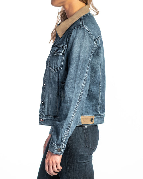 Denim & Taupe Suede Jacket (Indigo Stone) Navy Stitch